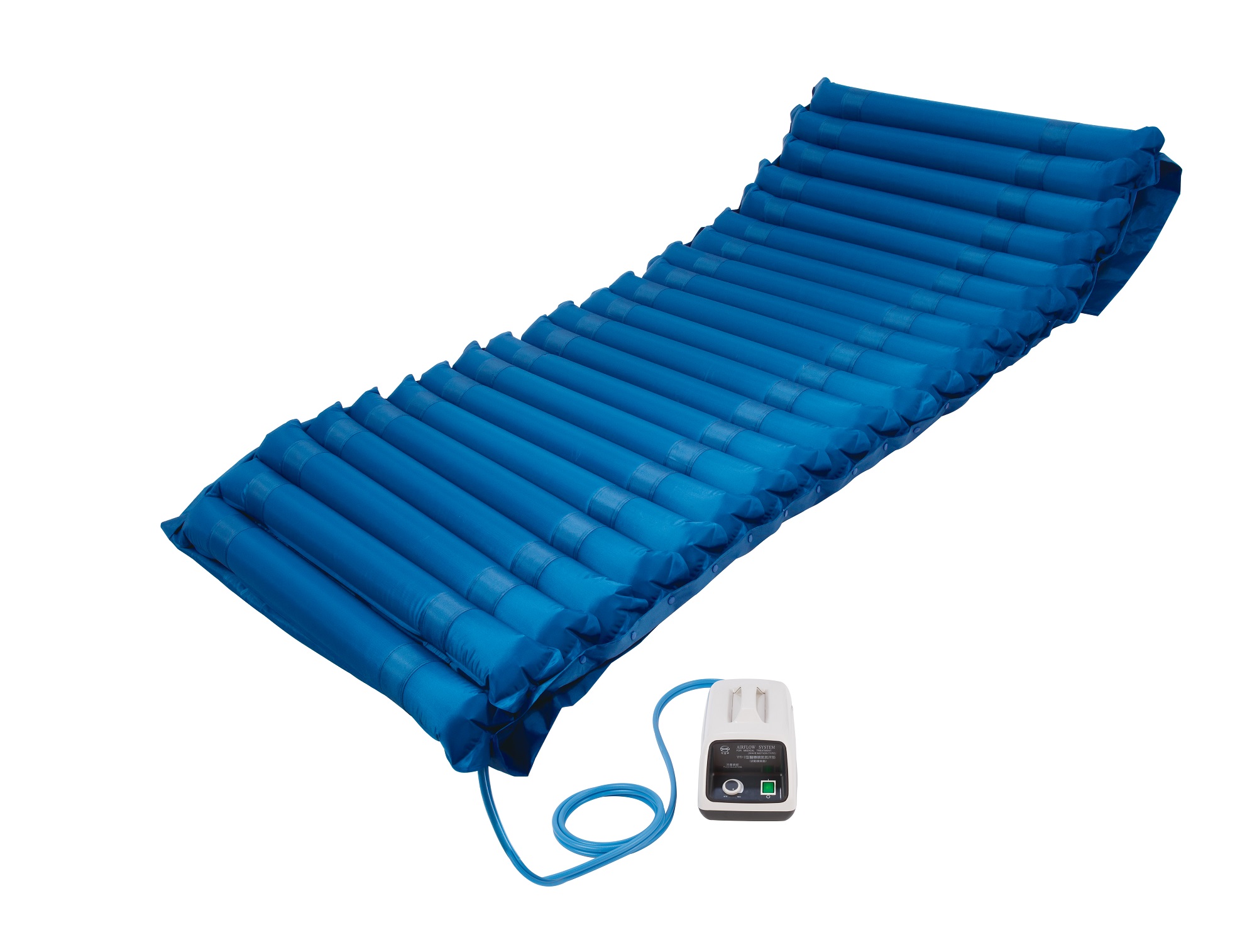 1.波動(dòng)醫(yī)療床墊是由22個(gè)獨(dú)立的管狀氣囊組成,按間隔的氣墊(1、3、5…;2、4、6…)組成兩組交替充氣,減輕患者的局部體壓部位的壓力,防止和降低因皮膚缺血、缺氧而引起的褥瘡發(fā)生的概率。