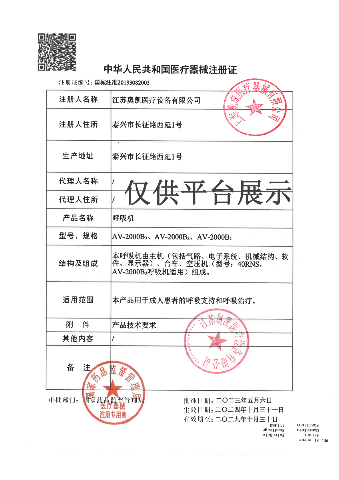 | 產(chǎn)品名稱 : | 奧凱醫(yī)用電動呼吸機AV-2000B2 |