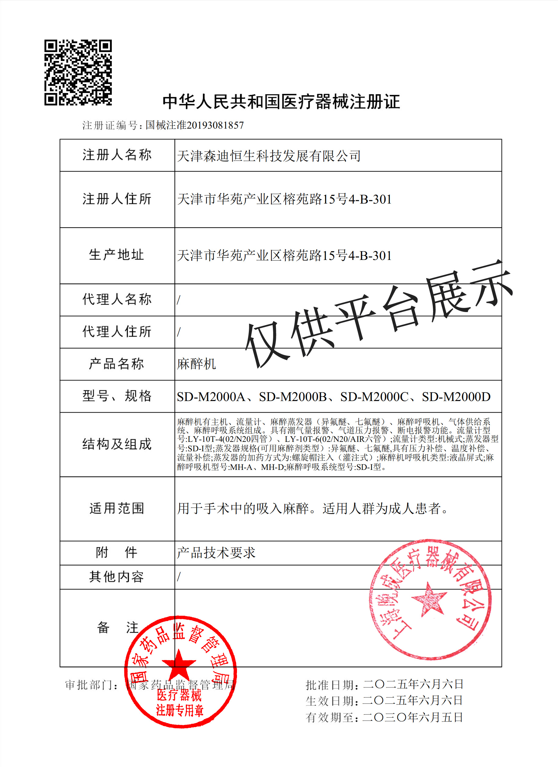 產(chǎn)品名稱 : | 森迪恒生 麻醉機SD-M2000B |
